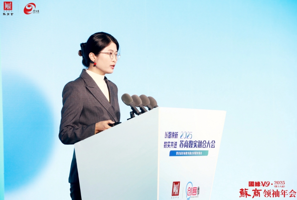 在分論壇“2025蘇商數(shù)實融合大會”上,蘇商會副秘書長、創(chuàng)客公社聯(lián)合創(chuàng)始人儲偉偉向與會嘉賓匯報了《2024蘇商數(shù)實融合案例分析報告》。同時,大會還發(fā)布了2024蘇商數(shù)實融合先鋒企業(yè)案例,舉辦了“蘇商數(shù)實融合創(chuàng)新服務(wù)聯(lián)盟”成立儀式。