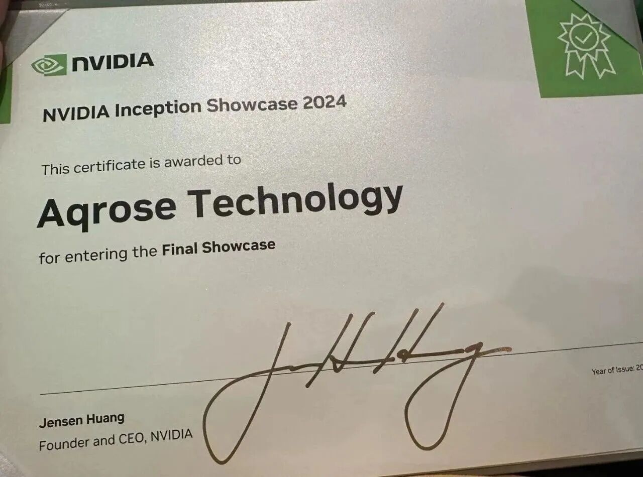 與此同時,阿丘科技積極將自身融入全球頂尖的技術生態(tài)圈。2024年,在英偉達(NVIDIA)主辦的創(chuàng)業(yè)企業(yè)展示活動中,阿丘科技從超過300家參展企業(yè)中脫穎而出,一路斬獲“優(yōu)秀企業(yè)”、“卓越企業(yè)”稱號,并最終躋身年度十大“榮耀企業(yè)”之列,獲得了英偉達創(chuàng)始人兼CEO黃仁勛親筆簽名的證書。